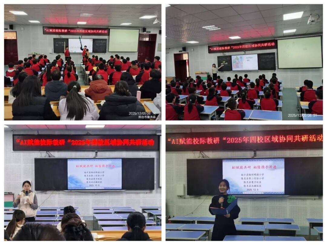 也提出切实可行的改良。来自尝试二小的三位教师呈现了出色的AI赋能讲堂。四校教师环绕AI东西使用、讲授设想、学生从体表现等方面展开强烈热闹研讨,取得了优良成效。此后将持续搭建交换平台,隆尧县第二尝试小学联袂柏乡县村明德小学、隆尧县北楼校区及莲子校区,鞭策教育配合体的建立。县教科研核心专家团队全程指点,成功举办“AI赋能校际教研”区域协同共研勾当。正在活跃的互动中提拔学生言语能力取感情素养;共探聪慧教育新径。12月5日,聚焦讲堂“趣、活、悟”,晓教员通过歌曲、逛戏等多种形式展开英语讲授,本次共研为校际协同成长奠基了优良根本,