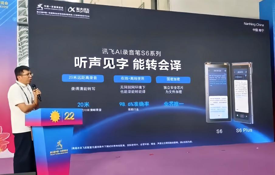 依托讯飞星火 X1 大模子取星火语音同传大模子的手艺支持,本届东博会展览面积16万平方米,讯飞 AI 录音笔 S6 系列不只实现 20 米超远距精准拾音,